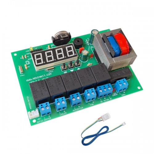 این دستگاه جدیدترین و کاملترین (نسخه 2.0) کنترلر دما، رطوبت و تایمر است که برای ساخت ماشین جوجه کشی، گلخانه، سالن پرنده، پرورش قارچ، میلورم، اتوماسیون صنعتی